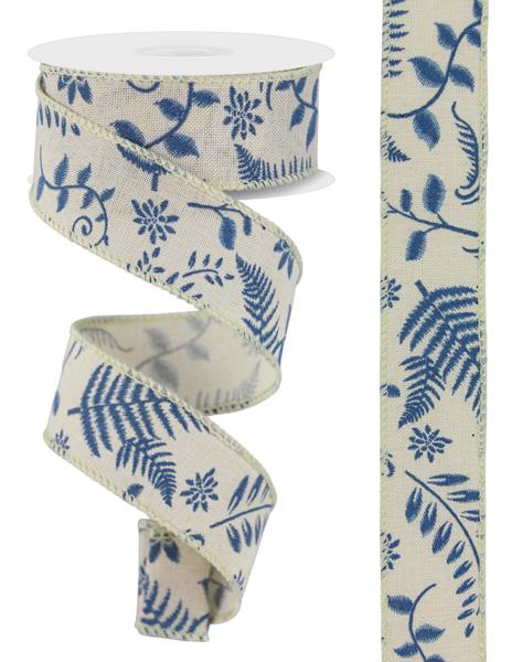 1.5" Embroidered Greenery Ribbon: Blue (10 Yards)