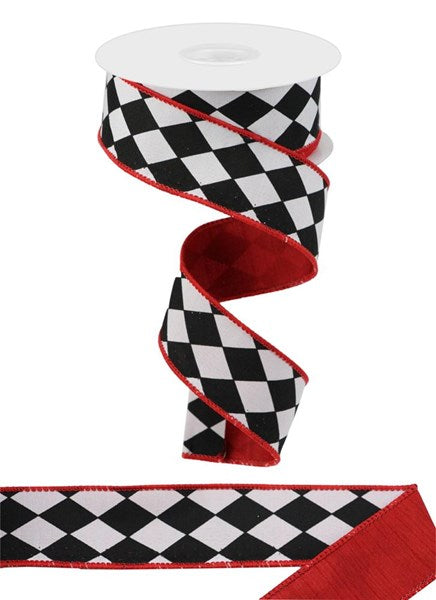 1.5" Harlequin/Dupioni Fused Back Ribbon: Red & Black (10 Yards)