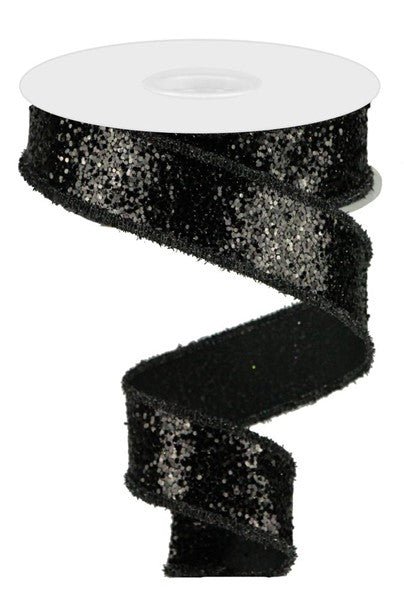 Get wrapped up in decorating with the best when you use this large glitter on pongee fabric ribbon! This ribbon features a double stitch fuzzy wired edge, as well as glittery black fabric that will certainly add some shine to your next display!