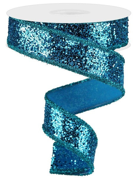 1.5" Large Glitter w/Trim Ribbon: Turquoise (10 Yards)