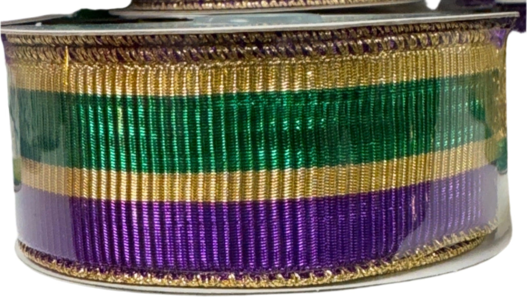 1.5" Vertical Stripe Ribbon: Mardi Gras (10 Yards)