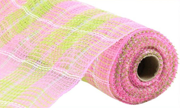 10.25" Jute/Iridescent Plaid Mesh: Light Pink & Spring Green (10 Yards)