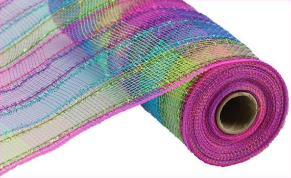 10.25" Tinsel/PP Check Mesh: Fuchsia, Purple, Turquoise, & Lime (10 Yards)