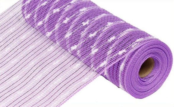 Use this metallic puff ball mesh as a fashionable enhancement for your next wreath creation! This versatile mesh is easily adaptable to any display you see fit; colored in lavender and white, it will undoubtedly stand out in any scenario! Add this mesh to a work wreath, garlands, swags, or even trees to wrap your home decor in style! Be sure to pair your mesh with a variety of ribbon and colorful tubing to show off your creative ingenuity!