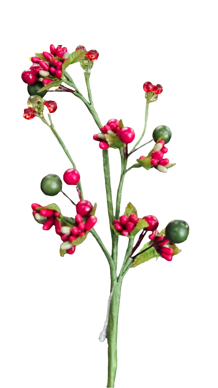 Enhance your floral arrangements with our 12" Mix Berry and Jewel Pick. This unique pick features a variety of vibrant berries and sparkling jewels, adding a touch of color and elegance to any bouquet. Made from high-quality materials for lasting beauty.