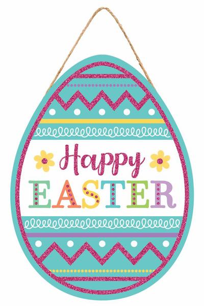 12" x 9" Happy Easter Glitter Egg Shape Sign