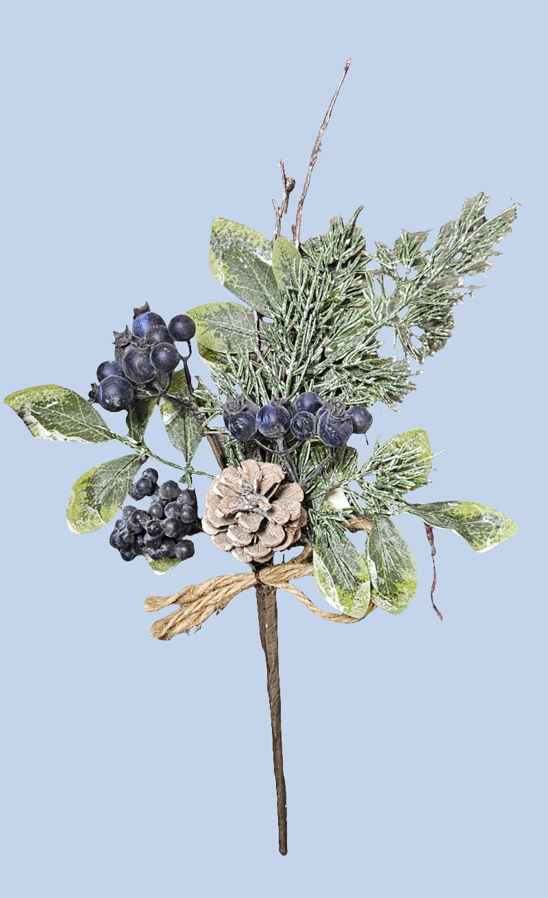 Introducing the 14" Blueberry Cone Leaves Pick, designed with beautifully crafted blueberry cone leaves for a touch of natural elegance. Made with high-quality materials, this 14" pick is sure to add a pop of color to any floral arrangement or home decor. Elevate your space with this stunning accessory today.