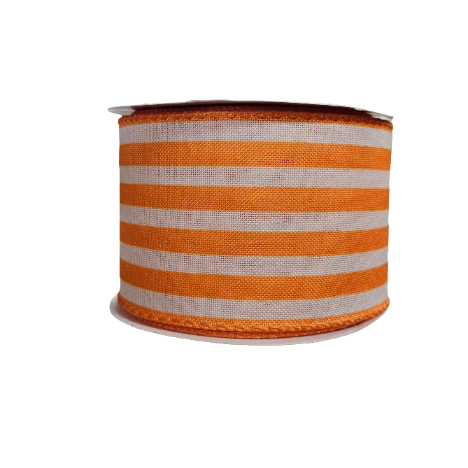 Add a splash of color with this 2.5" horizontal medium striped ribbon in vibrant orange and white. Perfect for crafts, gifts, and decorations, this 10-yard spool is sure to add a playful touch to any project. (Warning: may cause spontaneous dancing.)