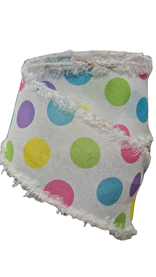 2.5" Polka Dot W/White Fuzzy Trim Ribbon (10 Yards)