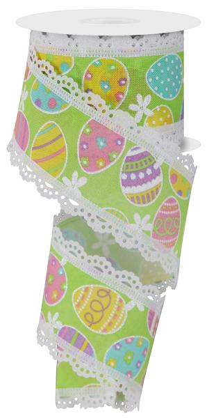 2.5" Easter Eggs/Lace Ribbon: Green (10 Yards)