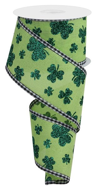 2.5" Glitter Shamrocks/Gingham Brt. Green/Kelly Green (10 Yards)