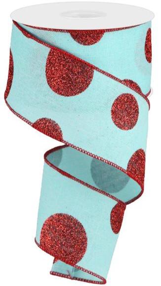 2.5" Large Glittered Dots Ribbon: Iced Blue & Red (10 Yards)