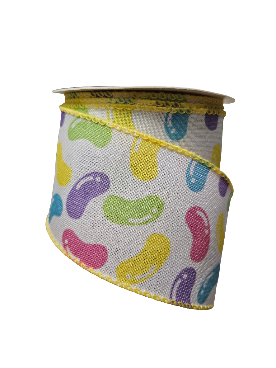 This 2.5" Jelly Bean wired ribbon adds a playful touch to any gift or project. With a durable wire design, it is perfect for creating beautiful bows that hold their shape. Bring a touch of whimsy to your crafts with this colorful ribbon.