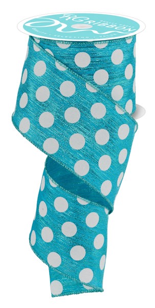 2.5" Medium Polka Dot Ribbon: Metallic Turquoise & White (10 Yards)