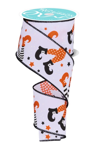 Orange and Black witch legs run across a white background. 2.5" Wide by 10yds