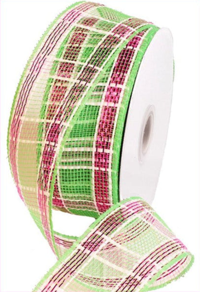 This 2.5" Stripe Mesh Ribbon is the perfect addition to any crafting project or gift wrapping need. With a unique striped design in green, pink, and white, this ribbon adds a touch of color and texture. Plus, with 25 yards, it's the perfect length for multiple uses. Get creative with this versatile ribbon!