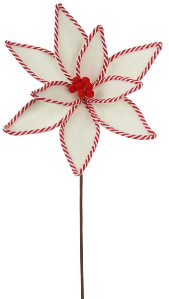 This 21" Felt Poinsettia Stem features a classic color combination of white and red, perfect for adding a festive touch to your holiday decor.
