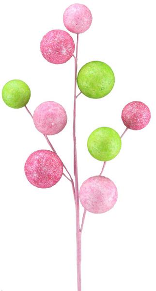 Enhance your Easter decor with the help of this shining glittered ball spray! Featuring a collection of hot pink, light pink and apple green glitter balls in a spike shape, attached to a long stem, this spray will look fantastic when paired with other glitter or metallic elements! Pair this spray with some shining sprays, picks or bushes to get the most out of its striking looks!