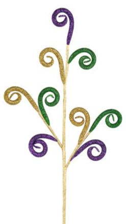 Enhance your creative Mardi Gras display with the help of this striking glitter tubing coils spray! This unique spray features glittery purple, emerald green and gold twisty tubing coils throughout, making this eccentric piece a versatile enhancement! Pair it with other glittered sprays, and use it in a hanging planter, pot, or a wreath display for the ideal creative base!