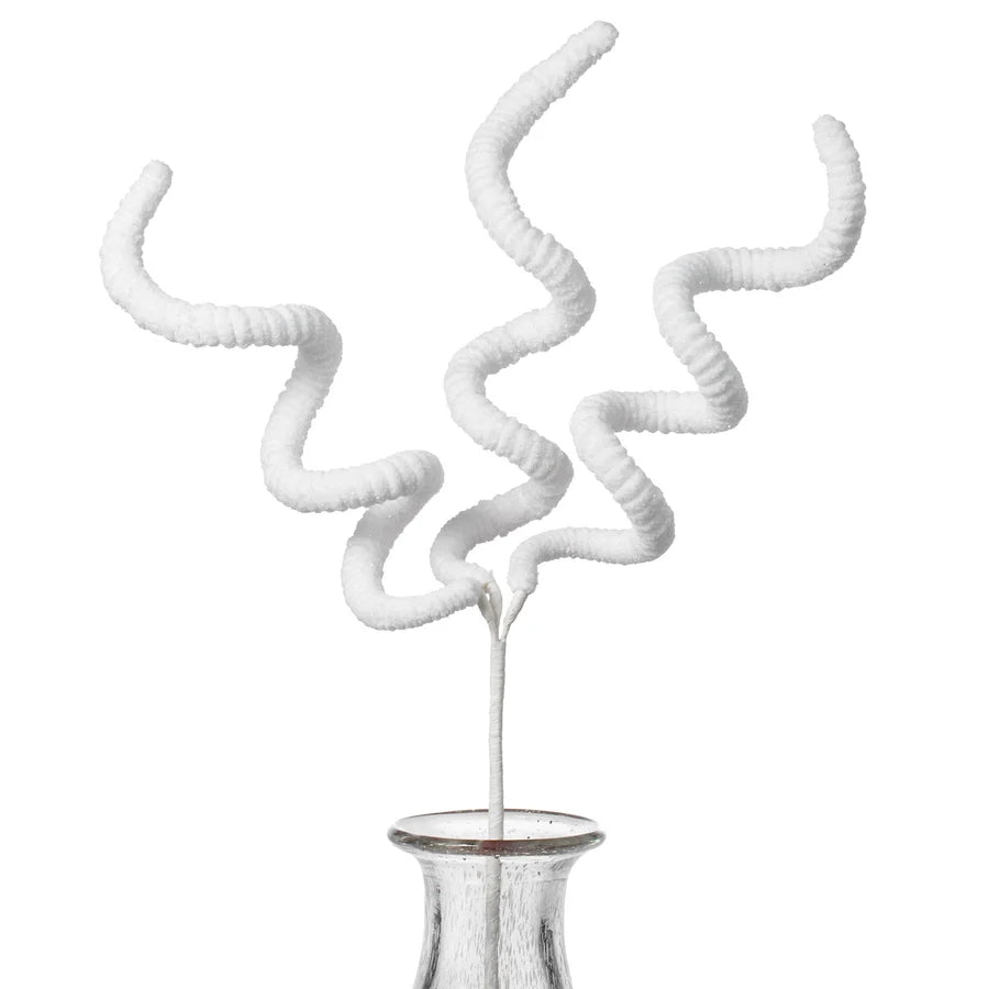 Add some whimsy to your projects with the 25" White Curly Spray! These soft, fluffy spirals are made of wired foam tubing wrapped in baby-soft chenille with a touch of sparkling silver glitter. Use them as springs to add dimension and playfulness to your creations.