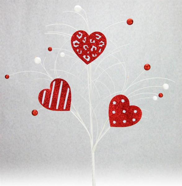 28"H Glitter Pattern Hearts Spray x 3: Red