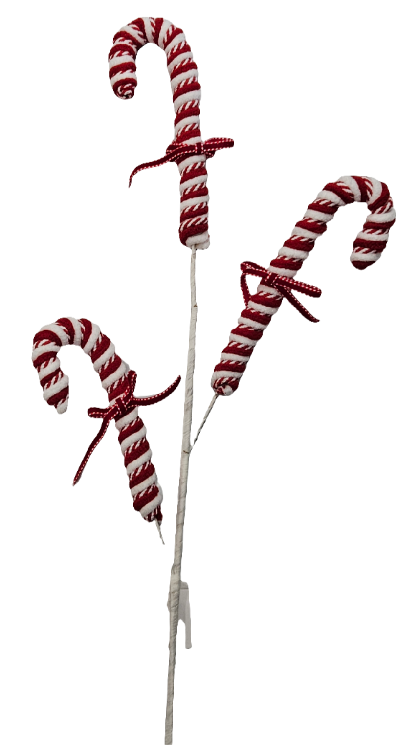 Introducing the 32" Candy Cane x3 Spray - a festive and versatile holiday decor piece. With its three candy cane sprays, this 32" decoration is perfect for adding a touch of whimsy to any space. Crafted with high-quality materials, it is both durable and eye-catching. Spruce up your home for the holidays with this delightful spray.