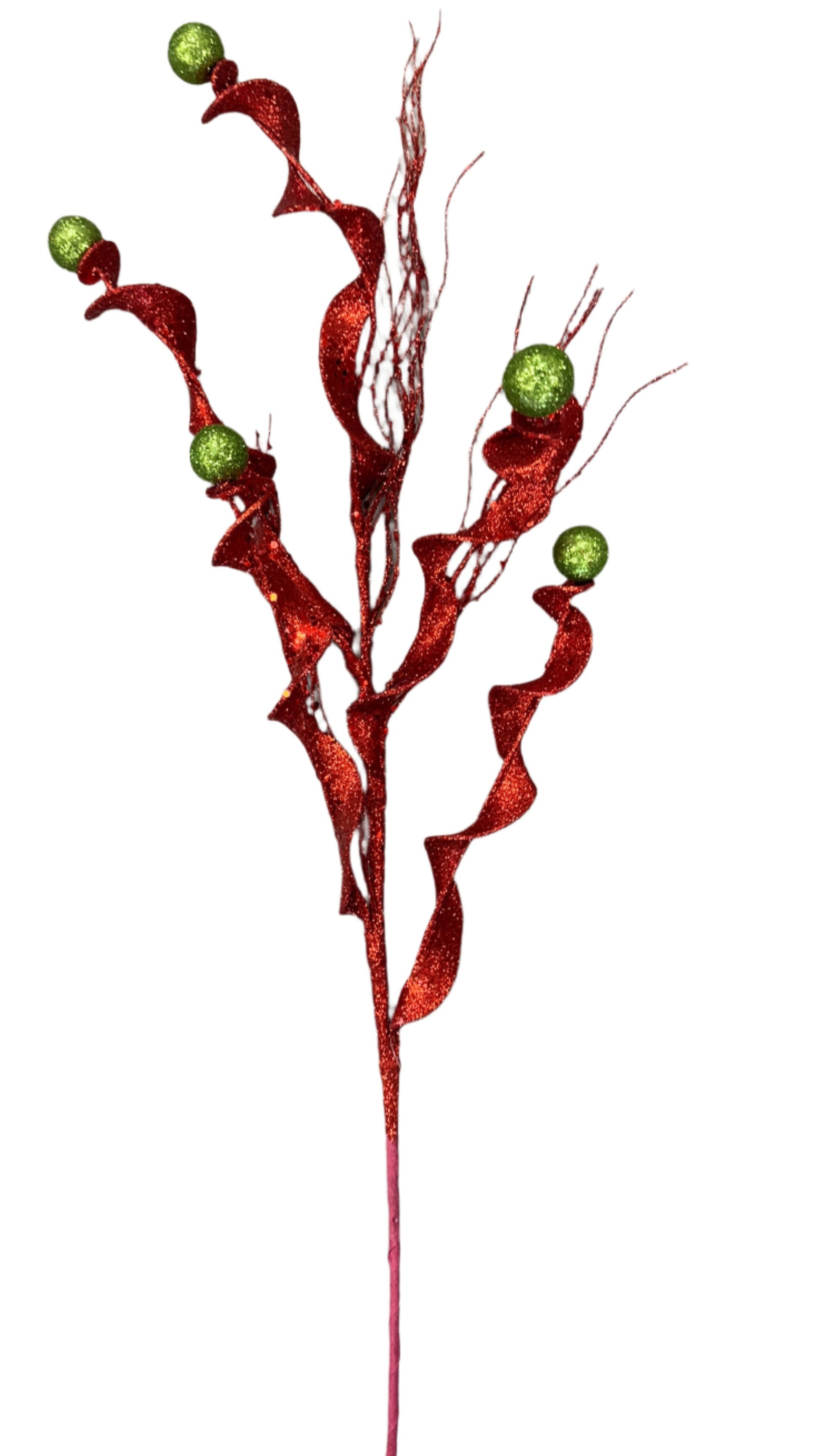 Discover the vibrant colors of our 32" Curly Spray w/Ball: Red & Green! With its unique curl design and festive red and green colors, this spray is perfect for adding a touch of holiday cheer to any decor. Crafted from high-quality materials, it is both durable and eye-catching.