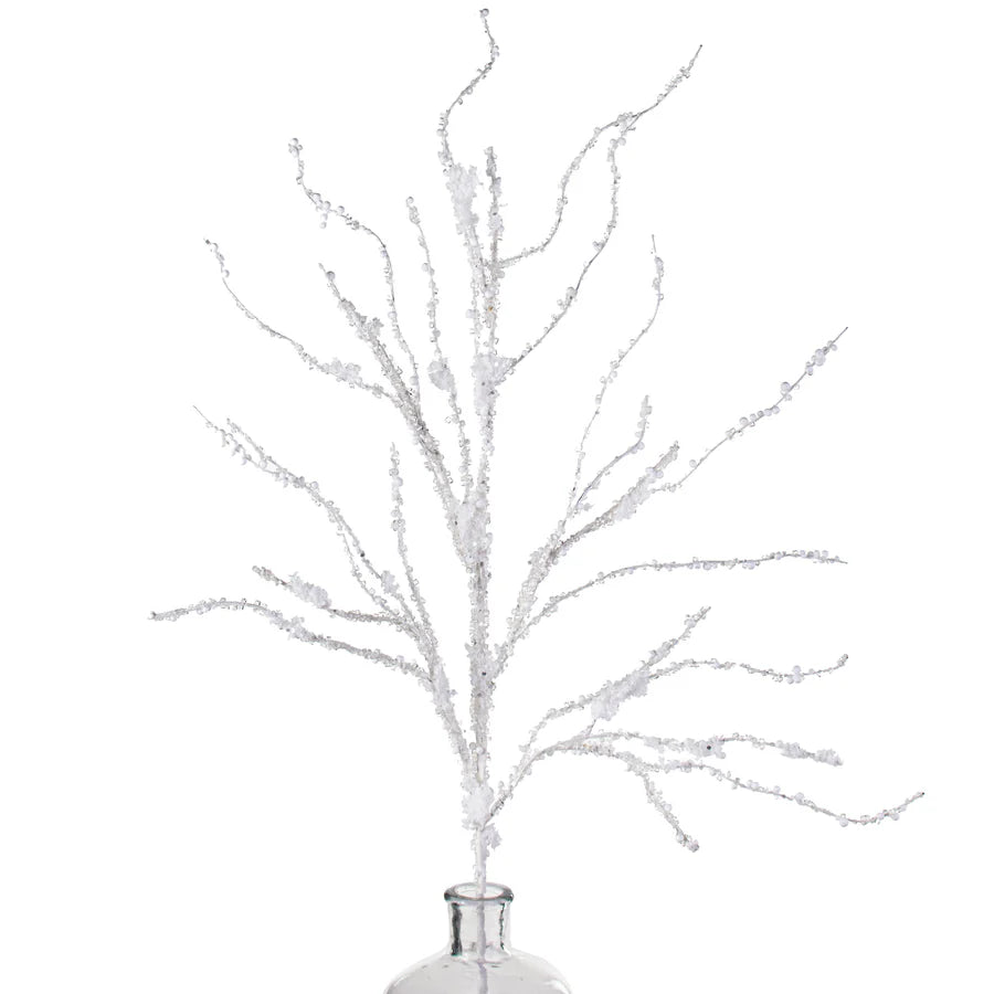 Create a winter wonderland with our 32" Snowy Twig Spray! The wired twigs are adorned with chunky faux ice, snowy flocking, and glitter for a frosty effect. Use the wired stem to easily bend and twist each piece to your liking. Measuring 21" tall and 20" wide, you can add a touch of magic to any space.