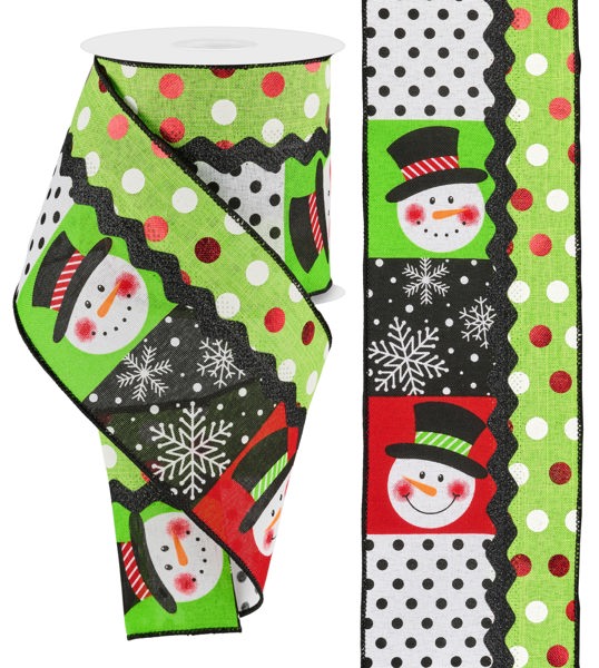4" 2-In-1 Snowman/Polka Dot Ribbon - 10 Yards