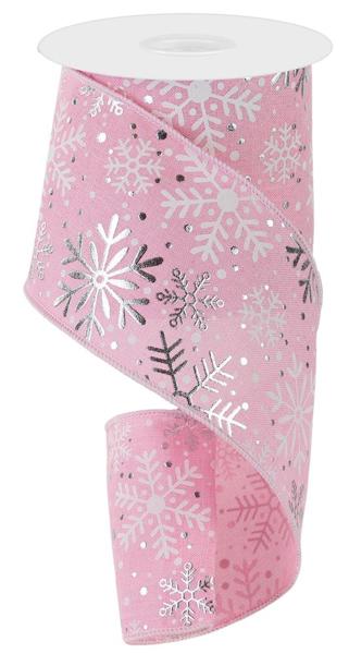 Just as every snowflake is unique, use this superb multi snowflakes on royal burlap ribbon to add your unique designers touch to any display! This ribbon includes a wired edge, with a light pink base and silver snowflakes of many shapes and sizes! Use this ribbon in any Winter or Christmas-themed project of your choosing.