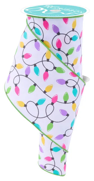 4"x10yds Christmas Lights Ribbon Wht/Pink/Ylw/Turq/Prpl