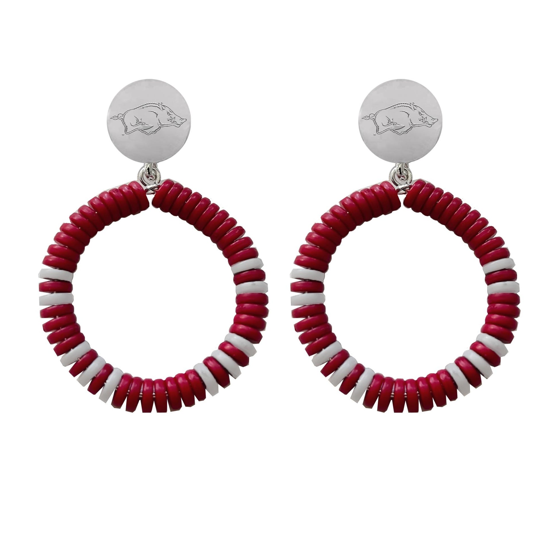 Show off your team pride with these Arkansas Razorback Raya Earrings. Made with high-quality materials, these earrings are perfect for any Razorbacks fan. Add a touch of style to your game day outfit and support your favorite team with these stunning earrings.