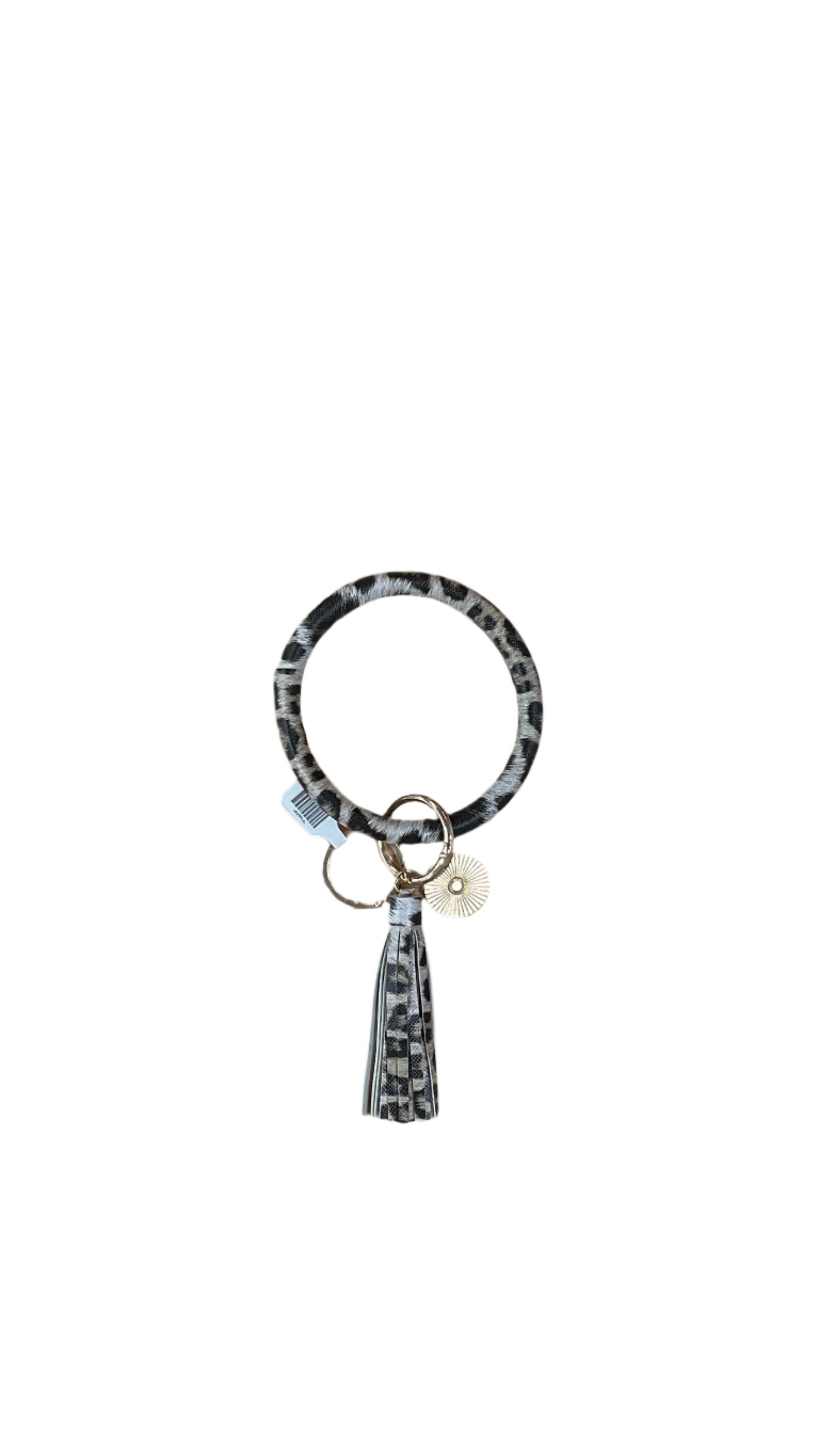 This stylish bangle bracelet keyring combines fashion and function. With a trendy pattern and tassel accent, it's the perfect accessory to keep your keys organized and easily accessible. Its bangle design allows for easy wrist carrying, making it a practical and stylish accessory for anyone on the go.
