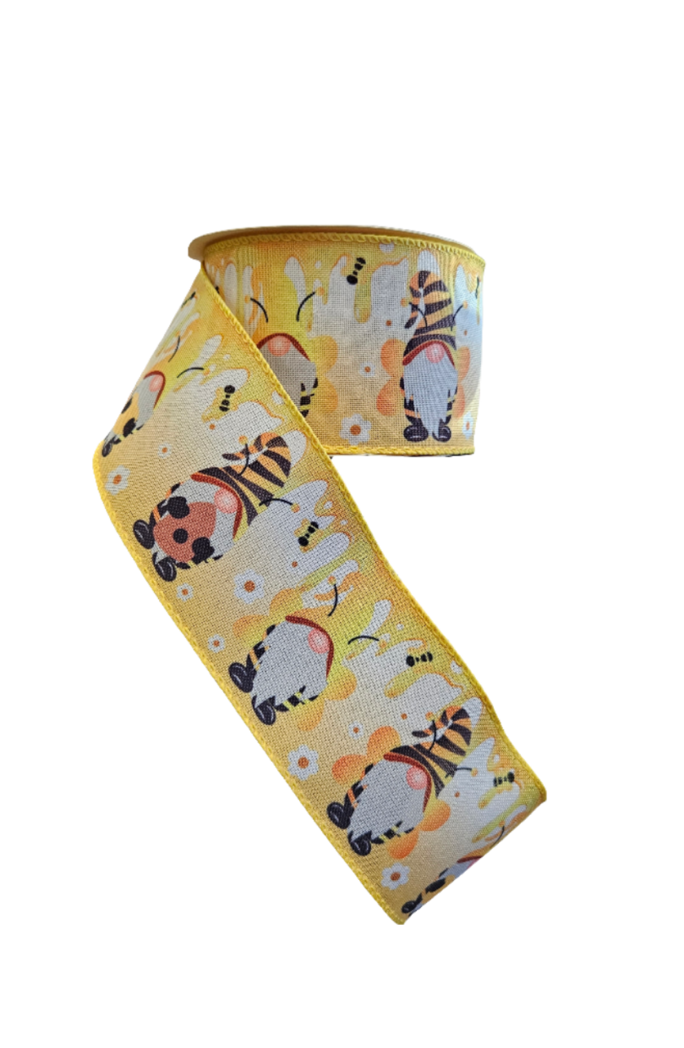 2.5" x 10 yds Bee Gnome Themed Ribbon