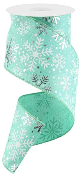 Just as every snowflake is unique, use this superb multi snowflakes on royal burlap ribbon to add your unique designers touch to any display! This ribbon includes a wired edge, with a dark mint base and silver snowflakes of many shapes and sizes! Use this ribbon in any Winter or Christmas-themed project of your choosing.