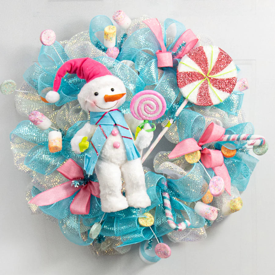 As a product expert, I recommend our 21" Foam Peppermint Lollipop for your holiday candy projects. This extra large lollipop features a foam disk base with shimmering clear and pink tinsel, reminiscent of a starlight mint. The sturdy PVC stick is wrapped in a pink satin ribbon for a candy cane effect. The perfect festive touch!