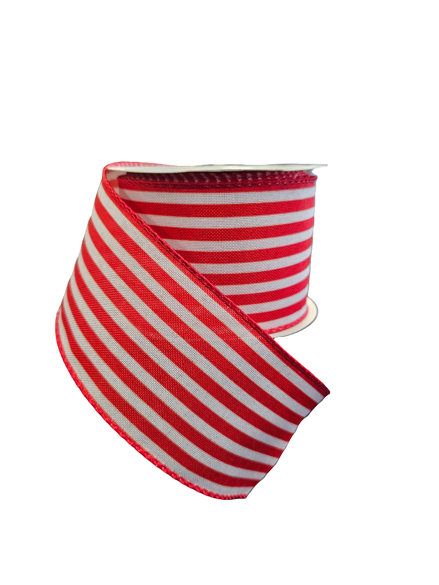 Horizontal Small Striped Ribbon 2.5" x 10 yard Red and White