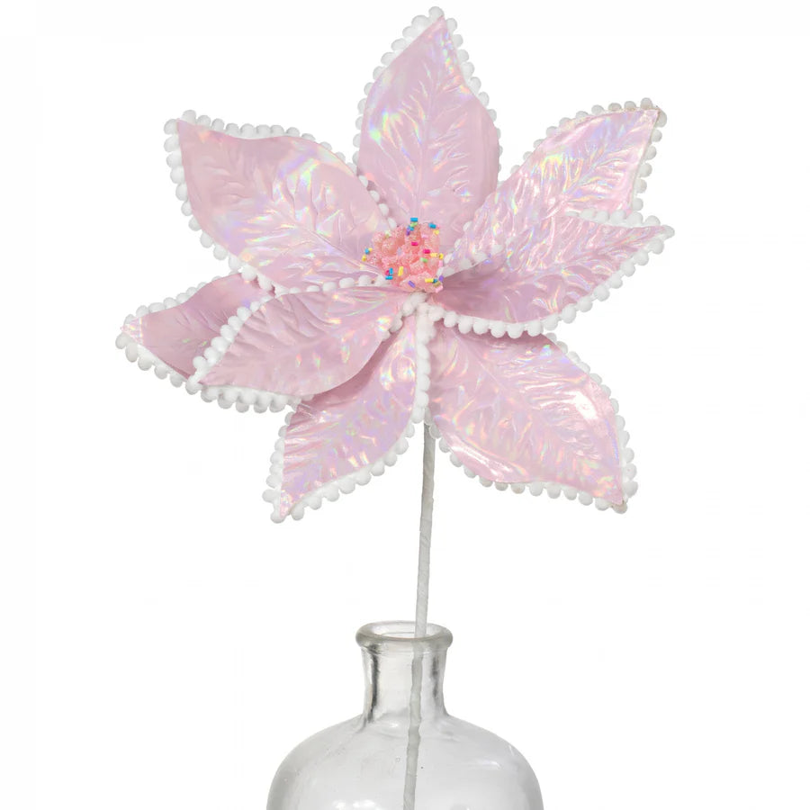 24" Iridescent Poinsettia Sprinkles Stem: Blue & Pink