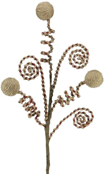 26"L Jute Rope Ball/Twisted Coil Spray: Red