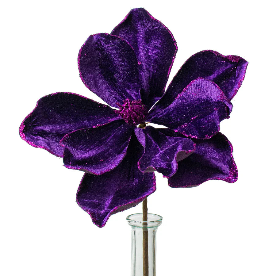 10" Velvet & Glitter Magnolia Spray: Green & Purple