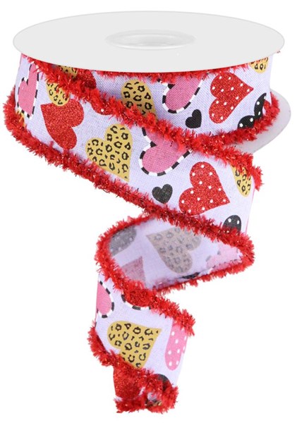1.5" Hearts/Tinsel Ribbon: Multi Pattern (10 Yards)