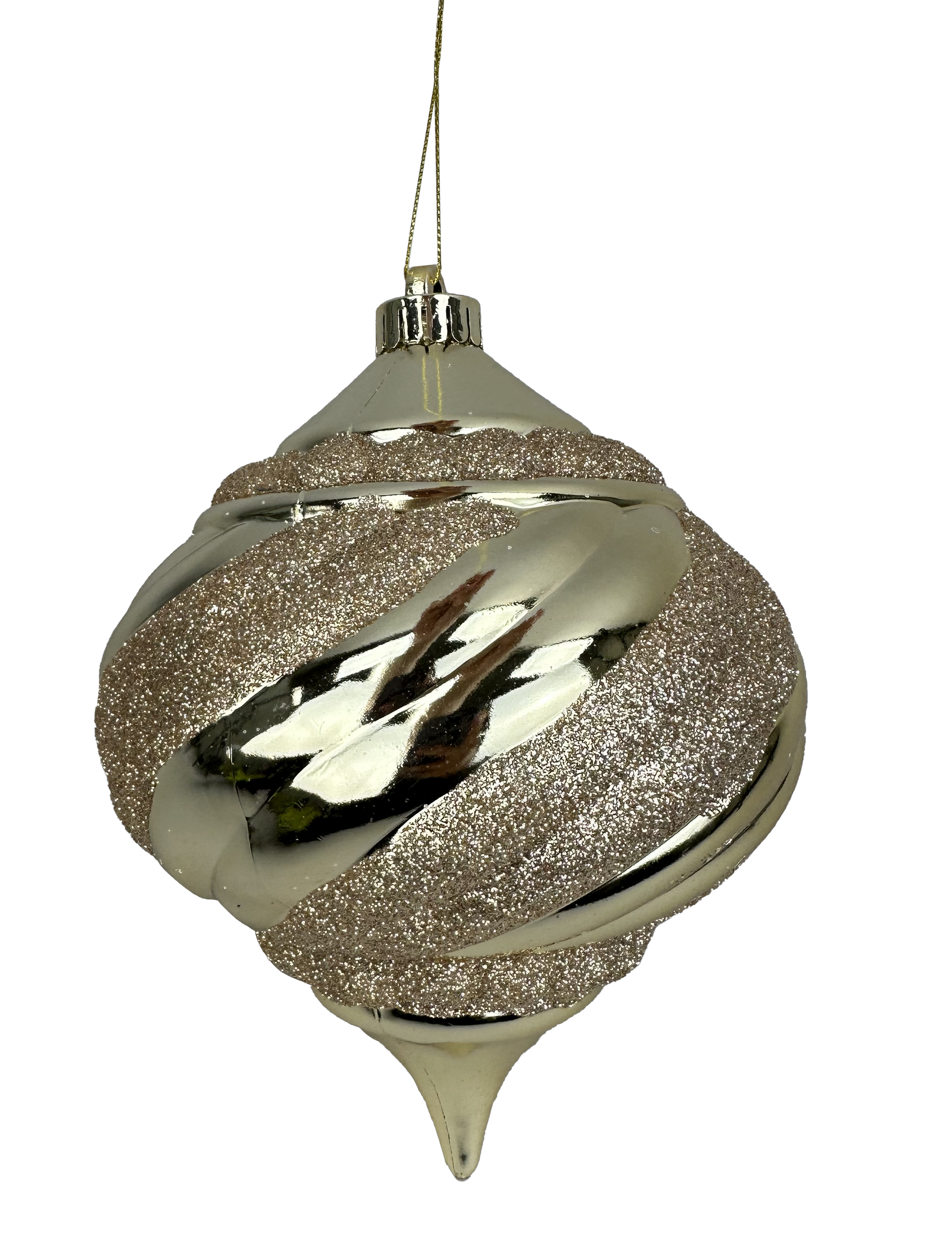 This 8" Stripe Onion Ornament in Champagne is the perfect addition to your holiday decorations. With its elegant design and 8" height, it will add a touch of sophistication to your tree or home. Made from high-quality materials, this ornament is sure to last for years to come.