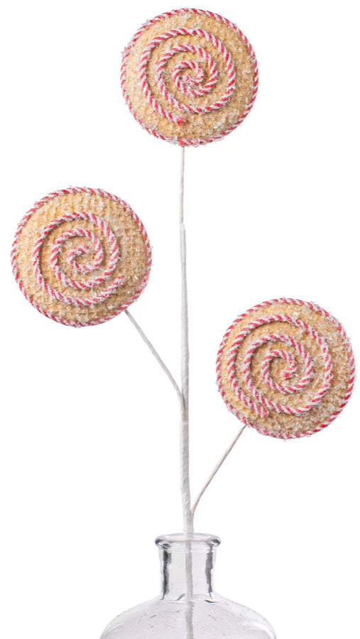 Enhance your holiday decor with our festive Candy Cane Twirl Gingerbread Spray. This unique decoration features sparkling gingerbread cookies, accented with candy cane rope and faux ice crystals. The textured waffle weave fabric and coordinating churro spray add the finishing touches.