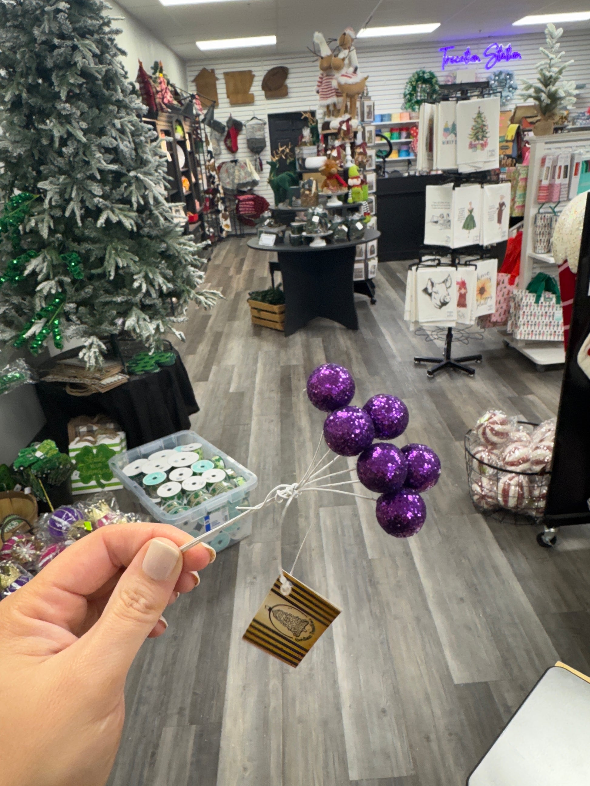 Add a touch of sparkle to your holiday decor with our small Purple Glitter Ball Pick Set. Each set comes with 12 picks, perfect for adding a pop of color to your Christmas tree, wreath, or centerpiece. Lightweight, these picks are easy to use and reposition as needed. Elevate your holiday decorations with this stunning set!