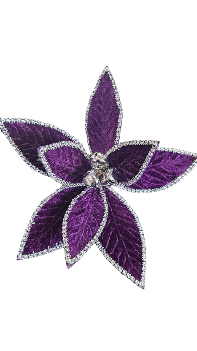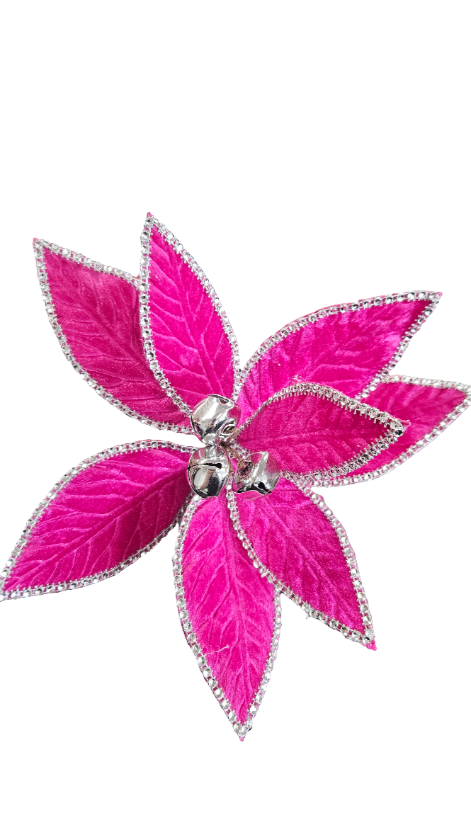 Add a touch of elegance to your holiday decor with our 20" Rhinestone Velvet Poinsettia Stems. Featuring jewel trim and jingling bells, this poinsettia stem is perfect for wreaths, floral arrangements, weddings, and more. Measures 10" wide for a full and festive look.