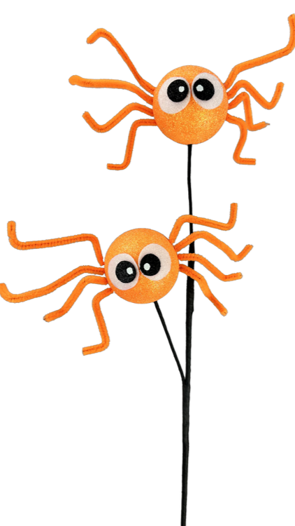 As an expert in festive arrangements, add a playful touch with the 21" Spider Spray. The friendly orange spiders, with their large and captivating eyes, are sure to charm any occasion. At 21" in length with each spider measuring 5" x 3", this piece is the perfect addition to weave a web of cuteness into your next design.