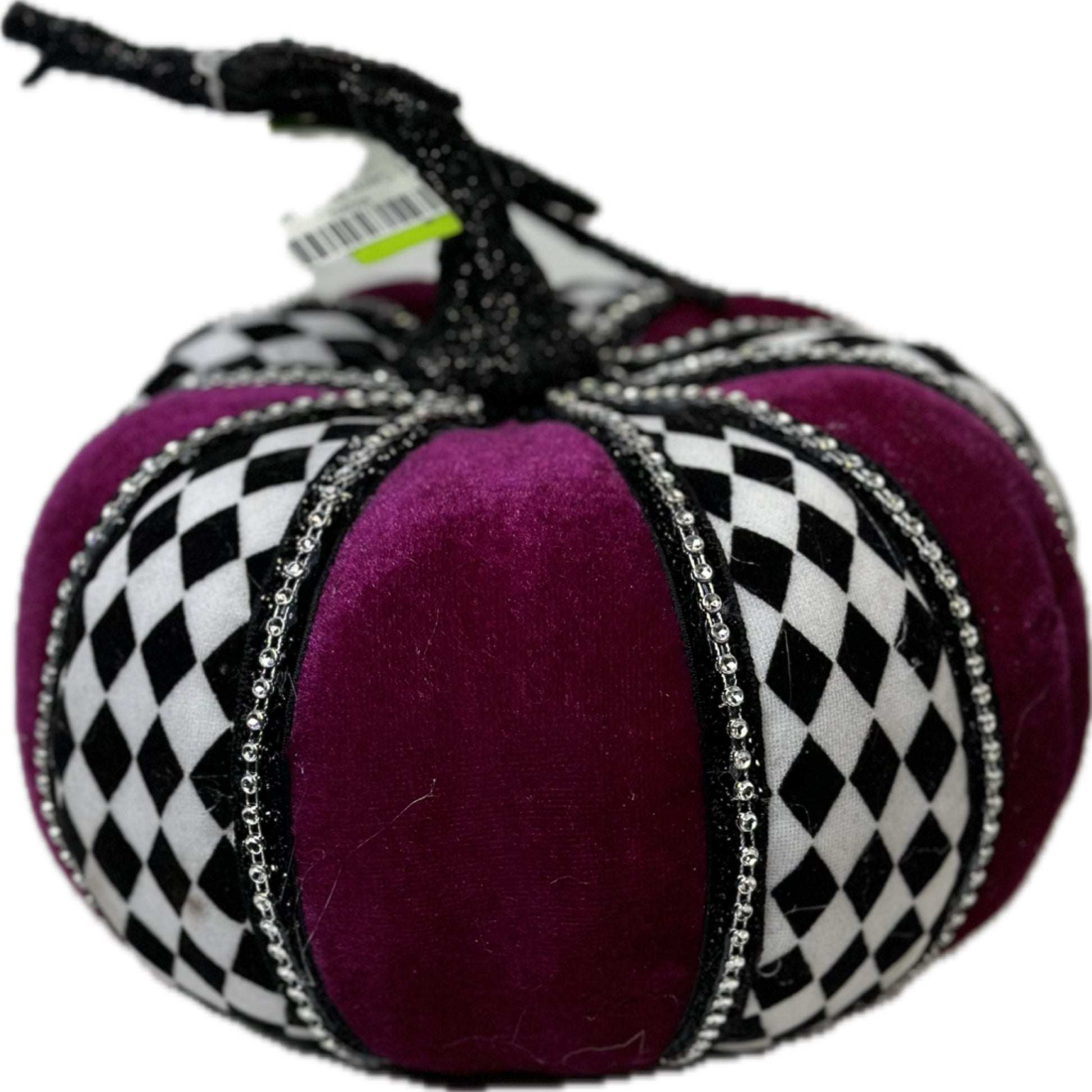 Elevate your Halloween decor with our Velvet Harlequin Rhinestone Pumpkin. Adorned with sparkling rhinestones, this pumpkin adds a touch of glamour to any space. Available in classic black and white or playful pink, it's the perfect addition to your seasonal display. Bring a touch of elegance to your home this fall.