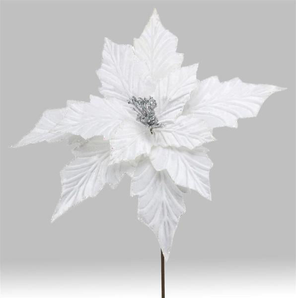 This 22" Velvet Poinsettia features a luxurious 15" diameter velvet flower on a sturdy 22" stem. Perfect for adding a touch of elegance to your holiday decor, this white poinsettia will surely impress. Made from high-quality materials, this product will last for years to come.